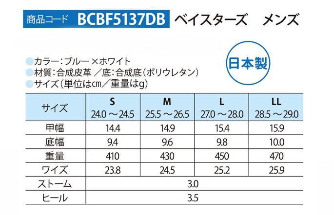 - アッパー:人口皮革(ポリエステル)